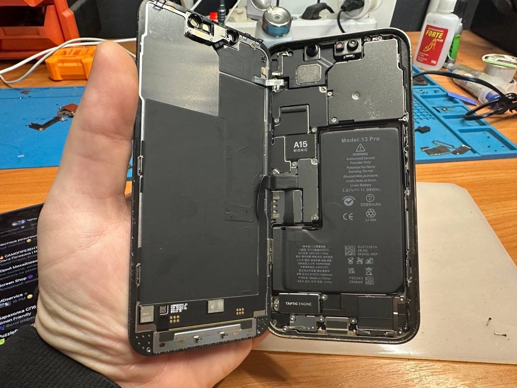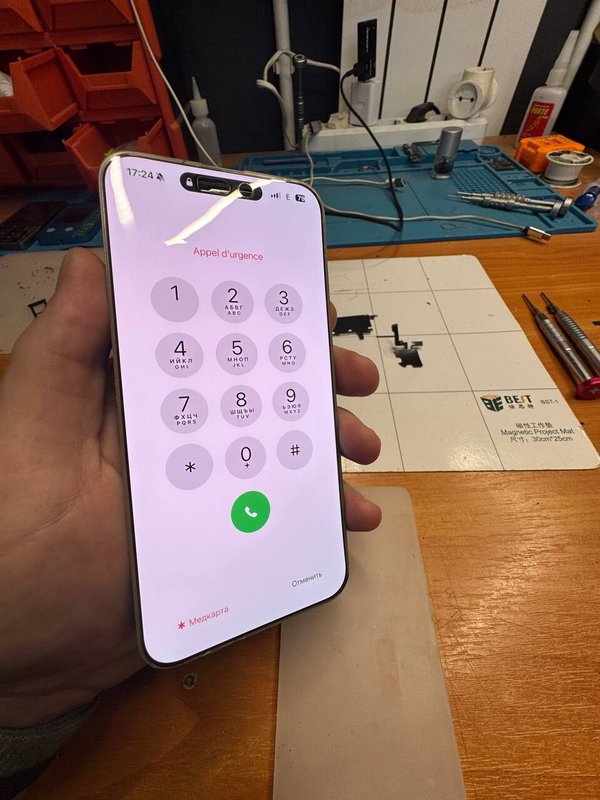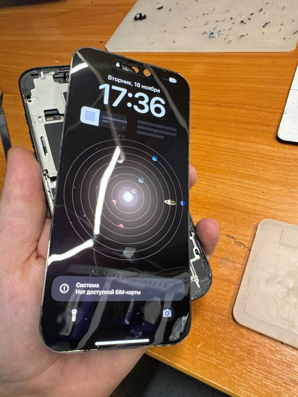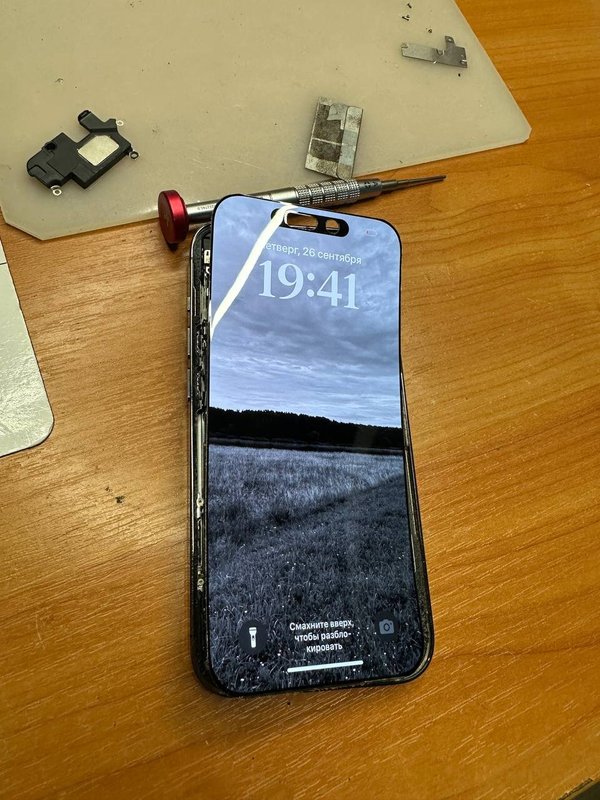 Павел быстро поставил новый экран, помог удалить данные и собрал телефон обратно.