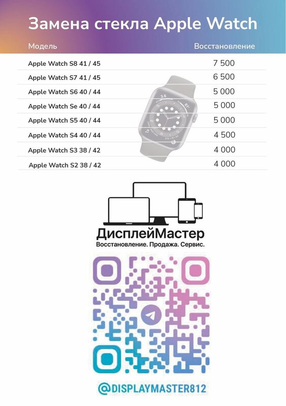 Преимущества: Оперативно заменили стекло на Apple Watch.